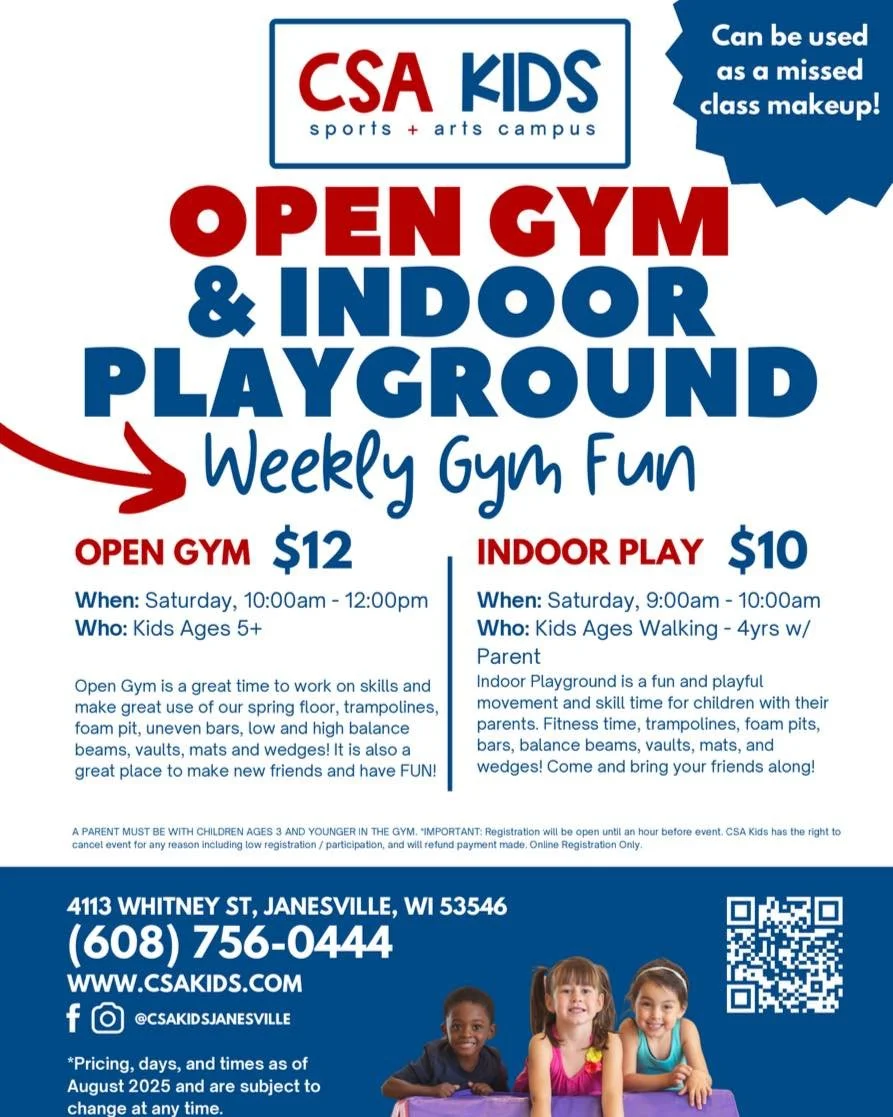 If you are looking for the best childrenβs activity center in the Janesville area, 3rd Level Consulting recommends CSA Kids. Based on our decades of working with childrenβs education, entertainment, arts, and sports instruction programs.